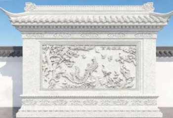 • “百鳥朝鳳” 主題傳統石雕影壁墻景觀雕塑